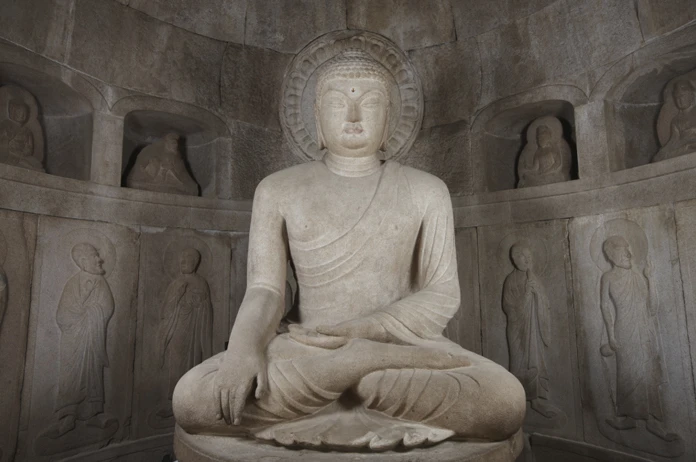 석굴암석굴암(국보)은 신라 경덕왕 10년에 당시의 재상인 김대성에 의해 창건되었다고 전해진다. 불국사에서 산등성이를 타고 등산로로 3km, 신도로로는 9km 거리에 있는 석굴암의 구조는 방형과 원형, 직선과 곡선, 평면과 구면이 조화를 이루며 특히, 벽 주위에 조각된 38체는 어느 것 하나 걸작이 아닌 것이 없고 전체적인 조화를 통해 고도의 철학성과 과학적인 면모를 나타내고 있으며 중앙에는 백색 화강암으로 된 여래좌상의 본존불이 동해를 굽어보고 있다.